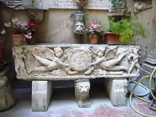 - The funerary monument of Pope Adrian VI (r. 1521–1523), commissioned by his friend, cardinal Willem van Enckevoirt and designed in part by Baldassarre Peruzzi.[10]