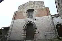 An older 11th century church stood at the site affiliated with an Augustinian convent. Documents take note of former in 1340, and the latter in the early 14th-century.[1] Like the cathedral in this town, the present structure was erected in a Gothic style. It appears that initially only the lower stage of the church was completed with stone sheathing of alternating red and white strips.