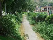 The Santa Terezinha neighborhood has a total area of 0.3 km2 and is bordered by Bom Jesus (to the north), Santa Helena (to the west), Caladinho, Aparecida do Norte (to the east) and Santa Terezinha II and the municipality of Timóteo (to the south). It covers the area where the Caladão Stream flows into the Piracicaba River. Although the neighborhood is bordered by the creek, flooding is not frequent in this stretch, as the accumulated water drains into the Piracicaba. There are trees on Julita Pires Bretas Avenue, which divides the Santa Terezinha and Santa Helena neighborhoods. In the upper part, landslides occasionally occur in areas on the edge of slopes.[6][7][8][9][10]