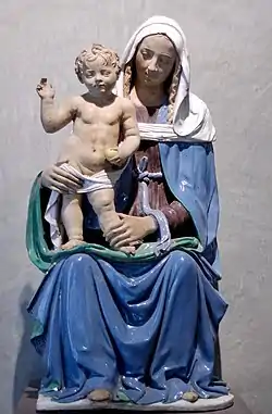 Works attributed to Santi Buglioni include the Deposition in the St. Francis Museum of Greve in Chianti, the cyborium in the church of San Silvestro at Convertoie, the pavement of the Biblioteca Laurenziana and of Palazzo Vecchio of Florence. Around 1520-1530 he executed the Noli me tangere at the Bargello and the façade decoration of the Ospedale del Ceppo at Pistoia. From 1539 is the monument to the condottiero Giovanni dalle Bande Nere, together with Niccolò Tribolo, followed by a glazed pottery for the Abbey of Vallombrosa.
