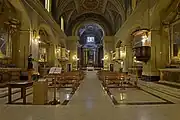 The relics of St Cyriacus were translated here in 1475; they were later translated to the church of Santa Maria in Via Lata. The translation may have been the result of some confusion, as Cyriacus is an alternative form of Quiricus. In 1716, it was destroyed by fire. Pope Innocent XIII who was the Cardinal-Protector had it rebuilt and granted it to the Dominicans[2] of San Marco. The church as it stands today was completed in 1733, and was designed by Filippo Raguzzini. In 1856, the vault was frescoed by Pietro Gagliardi.[2]