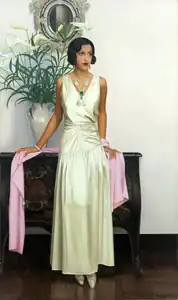 She died in a nursing home in St. Moritz, Switzerland, in 1937, at the age of 23 years.[5] Sanyogitaganj, formerly the residency bazaar of Chawanni, in Indore is named for her.[6] In 1980, many items from Manik Bagh were sold at auction in Monaco.[4][7] In 2019, many were placed on display at an exhibition at the Museum of Decorative Arts in Paris.[4][7]