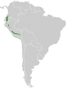 Because E. l. meridae is known only from a single 19th century specimen and might be extinct, the SACC does not include Venezuela in the species' range. The SACC also notes that the species has been recorded as hypothetical (with "no tangible evidence") in Bolivia.[9] There are several gaps in the distribution along the Andes that have not been explained.[8]