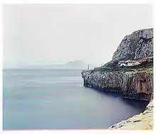 View of the Europa Point Lighthouse in Gibraltar with the African mountain Jebel Musa across the Strait, 1903