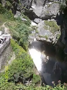 Saraswati River is a tributary of Alaknanda River flowing in Uttarakhand State, India.[1] It joins Alaknanda River at Keshav Prayag, near Mana village, Badrinath. The confluence of rivers Alaknanda and Bhagirathi at Devprayag in the state of Uttarakhand, forms and flows as river Ganga or the Ganges from the point forward.[2][3] A natural stone bridge, named "Bhim Pul",[4] lays across the flowing Saraswati river, making a passage towards Vasudhara falls and Satopanth Lake. Many locals believe that Bhim Pul is a rock bridge founded by Bhima of Mahabharatha, to help Draupadi cross the rivulet.[5]