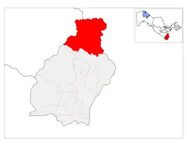 Sariosiyo district (Uzbek: Sariosiyo tumani / Сариосиё тумани) is a district in Surxondaryo Region, Uzbekistan. Its capital is the town of Sariosiyo.[1] It has an area of 3,930 km2 (1,520 sq mi)[2] and its population is 213,200 (2021 est.).[3] The district consists of one city (Shargʻun), 4 urban-type settlements (Sariosiyo, Yangihayot, Tortuli, Boʻyropoʻsht) and 9 rural communities (Dashnobod, Navroʻz, Buyuk kelajak, Sangardak, Bogʻi iram, Soʻfiyon, Toqchiyon, Oʻzbekiston, Xufar).[1]