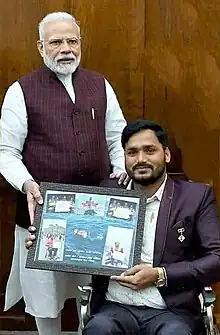 Satendra Singh Lohiya[1] (born 6 July 1987) is an Indian swimmer with 70% disability.[2] On 24 June 2018 he crossed the English Channel as part of a swimming relay team which, for the first time saw four para swimmers from India cross the English Channel.[3] He completed the channel in 12 hours and 26 minutes, setting a new record.[4][5][6] He has been selected for the Tenzing Norgay Adventure Award 2019 for first Indian para swimmer which was given by the Honorable President of India Ram Nath Kovind[7] and The Prime Minister of India Shri Narendra Modi also recognized and appreciated Satendra Singh Lohiya's hard work and blessed him for his future endeavor. He received Vikram Award, the highest state-level sports awards in Madhya Pradesh, for swimming from the Chief Minister Shri Shivraj Singh Chauhan, MP on 23 December 2014.