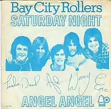 "Saturday Night" is a song recorded by the Scottish pop rock band Bay City Rollers. It was written and produced by Bill Martin and Phil Coulter. The tune is an upbeat rock number with a memorable hook, in which the word "Saturday" is spelled out in a rhythmic, enthusiastic chant.