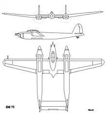 The two DB 605 engines gave a total of 2,950 hp. The aircraft's maximum speed at 585 km/h (363 mph) was better than the SM.88. There were three 20 mm MG 151s in the nose. Two more were mounted in the wings, close to the fuselage. Another machine gun was provided for the rear gunner. Total bomb load was 1,640 kg (3,620 lb) or a torpedo.[1]