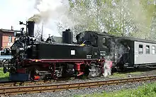 The Saxon IV K were narrow gauge, 0-4-4-0T Günther-Meyer type steam engines built for the Royal Saxon State Railways with a track gauge of 750 mm (2 ft 5+12 in). A total of 96 were built between 1892 and 1921, making the Saxon IV K the most numerous narrow gauge locomotive in Germany. In 1925 the Deutsche Reichsbahn grouped these engines into their DRG Class 99.51–60.