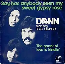 “Say, Has Anybody Seen My Sweet Gypsy Rose” is a 1973 song by the American pop music group Tony Orlando and Dawn. Written by Irwin Levine (lyrics) and L. Russell Brown (music), it was included on the group's 1973 album, Dawn's New Ragtime Follies.