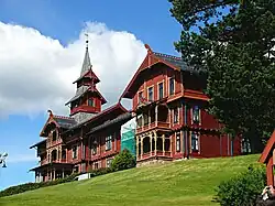 Scandic Holmenkollen Park Hotel is a seminar and conference hotel in Holmenkollen in Oslo, Norway, close to Holmenkollen National Arena and Holmenkollbakken, and the Holmenkollen station of the Oslo Metro. Opened in 1894, it was designed by Balthazar Lange and is regarded as one of the prime examples of dragestil style of design and architecture in Norway.[1]