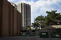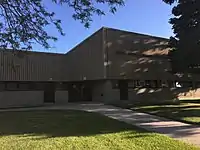 Until 1973, the board offices was also located at Scarborough Municipal Offices at 2100 Eglinton Avenue near Birchmount Road (built after World War II now demolished and site of parking lot). The new SBE administrative offices, located at 2466 Eglinton Avenue East (northside of Eglinton and west of Midland Avenue) and designed by architect Harold Carter, were built in 1954 and administrative operations were relocated in 1973. The former building was declared redundant by 1986 and was replaced by Rainbow Village condos in 1990.[32]