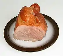 In Switzerland it is also cured and smoked but served with beans or sauerkraut. There it is very common as a Christmas dish.