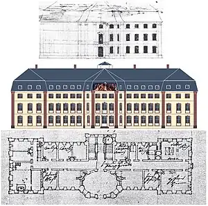 After the start of the French Revolution in 1789, Elector Clemens Wenzeslaus von Sachsen offered refuge in the palace to members of the French royal family (King Louis XVI was his nephew).[1][2] Also, he allowed Koblenz to become a centre of French monarchism.[1][2] After the emigrants left the palace, the Prussian king Frederick William II stayed there for a few days in July 1792.[1][2] Later, the palace was converted into a military hospital for Austrian soldiers.[1][2]