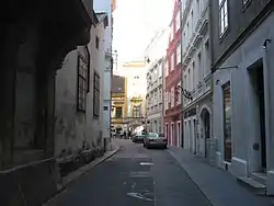 Schönlaterngasse ("Street of the Beautiful Lantern") is a small winding alleyway in central Vienna. In the Middle Ages it was known as Straße der Herren von Heiligenkreuz ("street of the gentlemen of Heiligenkreuz"), as it passes the Heiligenkreuzer Hof ("Holy Cross courtyard"). Later on, it carried several names that still referred to the Heiligenkreuzer Hof before being named after the "beautiful lantern" in 1780. The buildings along the alley date back to Baroque times.