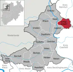 Schöppingen is a municipality in the district of Borken in the state of North Rhine-Westphalia, Germany. It is located approximately 10 km (6.2 mi) south-west of Steinfurt.
