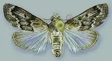 1. โ†‘ Goldstein, Paul Z.; Metz, Mark A.; Solis, M. Alma (2013). "Phylogenetic systematics of Schacontia Dyar with descriptions of eight new species (Lepidoptera, Crambidae)". ZooKeys (291): 27โ€“81. doi:10.3897/zookeys.291.3744. PMC 3677288. PMID 23794861. This article incorporates text available under the CC BY 4.0 license.