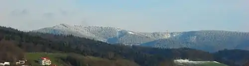 The Schauinsland (literally "look-into-the-country"; near Freiburg im Breisgau, Germany) is a mountain in the Black Forest with an elevation of 1,284 m (4,213 ft) above sea level. It is a popular destination for day trips. Due to the high amount of silver mining, it was previously known as "Erzkasten" (literally "ore box"); the name "Schouwesland" first appeared in 1347. The mountain is located roughly ten kilometres (6.2 miles) south-east of Freiburg's city centre.