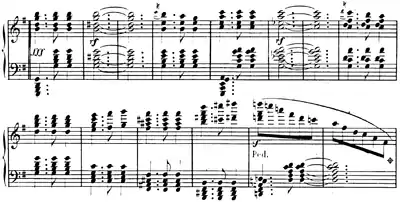 The scherzo then returns, but in ppp, and containing an instruction to hold down the una corda and damper pedals. Controlling the huge energy and velocity of the scherzo poses a very difficult challenge to the pianist, and its difficulty is increased on modern pianos.[1]