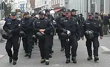 The Police was reformed again on 22 December 1952 through the Polizeiorganisationsgesetz of 1952 (Police organisation law).[41] However this time, legislation was not bound to the Ordinances of the British Military Government.[34] The Police was now organized into the Schutzpolizei, Criminal Investigation Police (Kriminalpolizei), the Bereitschaftspolizei, and the Waterways Police.[41] The Criminal Investigation Police was subordinated to the Landeskriminalamt, while the Schutzpolizei was subordinated to the Landespolizeiamt.[41]