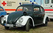 The Schleswig-Holstein Police is equipped with blue Uniforms, which is used in Hamburg, Bremen, Lower-Saxony, Thuringia and Mecklenburg-Vorpommern as well.[6][7][8] Unlike the other States using the uniform, Schleswig-Holstein has opted to equip their Officers with white service caps.[9] Officers are equipped with pepper spray,[10] batons[11] and Walter P99Q-Pistols.[12] Patrol cars are also equipped with Heckler und Koch MP5 and SigSauer MCX.[13] Both MP5 and MCX are to be replaced with the Heckler und Koch 437.[14] Tasers are currently being field-tested by Officers in Neumünster and Ahrensburg.[11]