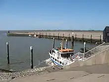 There are some small and medium-sized harbours (Meldorf, Büsum, Husum, Nordstrand, Pellworm, Dagebüll, Wyk auf Föhr, Amrum, Hörnum and List auf Sylt) located at the coast of Schleswig Holstein. The only possibility to reach them is driving through the national park. Responsible for most of the marine traffic are ferries driving to the North Frisian Islands.[41] The ferry traffic routes go through shipping channels in the national park area.