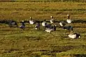 Eelgrass is the only flowering plant in the Wadden Sea which is capable of living under water. In 1930 most of the eelgrass in the Atlantic Ocean was killed by an epidemic. The eelgrass stocks haven't regenerated since. The plants are mainly located in the northern part of Schleswig-Holstein’s Wadden Sea and cover an area of 6000 ha. Compared to 705 ha in Lower Saxony and 130 ha in the Netherlands, it is quite large. Also in contrast to the worldwide trend of decreasing eelgrass stocks, the stocks in the Frisian Wadden Sea area are increasing. During the maximum spatial extent in August eelgrass covers up to 13% of the North Frisian Wadden Sea.[14] Eelgrass areas provide habitats for marine organisms and are an important food source for barnacle geese (Branta leucopsis).[15]