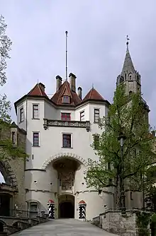 Charles II. von Hohenzollern-Sigmaringen (1547–1606), son of Charles I was the count of Sigmaringen from 1576 until 1606. He was also the founder of the Hohenzollern-Sigmaringen line of the Hohenzollern family. Under Charles II the castle was renovated.[2] Between 1576 and 1606 the gatehouse was expanded to cover the entrance to the castle and a new church was built near the castle.[5]