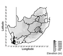 | Documented collection localities in South Africa | |