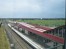 From 2009 to 2011, the track between Quakers Hill and Schofields was duplicated for more than three kilometres as part of the Rail Clearways Program.[4] This was intended as the first stage of a broader plan to duplicate the line as far as Vineyard. In order to be able to continue the duplication towards Richmond, it was proposed re-align a short section of track and relocate Schofields station to a site with fewer space constraints, 800 metres south of the existing station. The proposal to relocate the station was a controversial one and raised concerns amongst residents and businesses located near the former station, in relation to accessibility and urban decay.[5] Despite opposition to the plans from Blacktown City Council and the government's own local representative, John Aquilina MP, construction commenced and the station opened on 29 October 2011. The new station is located in a minimally developed area foreseeing future residential development and is designed to support a dramatic increase in patronage.[6]