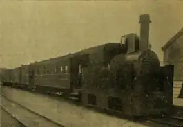 Construction was begun in 1885 and soon proved to be substandard. The Inspector of Railways refused to allow the line to be opened for public service in August 1886. Following some remedial work and a subsequent inspection, the line opened in September with a restricted speed limit of only 15 miles per hour. In October the service had to be suspended for 10 days owing to problems with both the track and the locomotives.[5] Services had to again be suspended in April 1887, with local ratepayers having to subsidise the company.[5] The Inspector of Railways gave a highly critical report of the line's standards of operation.