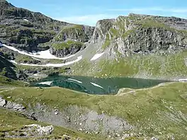 Schwarzsee (literally "Black Lake") is a mountain lake at an elevation of 2368 m on the Pizol mountain (2844 m) of the Glarus Alps.