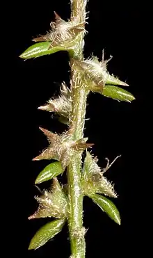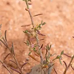 Sclerolaena parviflora (common names - Mallee copper burr, Small-flower saltbush)[2] is a species of flowering plant in the family Amaranthaceae, found in every mainland state and territory of Australia.[1][3] It was first described in 1923 by Robert Henry Anderson as Bassia parviflora,[4][5] but was transferred to the genus, Sclerolaena in 1978 by Andrew John Scott.[4][6]