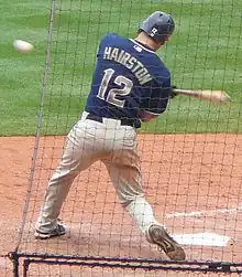 Hairston became a fan favorite in San Diego, well known for his clutch home runs and late-inning heroics. He hit three walk-off home runs for the Padres, in addition to other walk-off hits. From 2007 to 2009, he hit 12 home runs in late and clutch situations.[6] These are classified as at-bats in the 7th or later with the batting team tied, ahead by one, or the tying run at least on deck. He was particularly tough against the Giants, with 11 of his 58 career homers coming off San Francisco, as well as 23 RBI, by far the most against any team he's faced.[7]