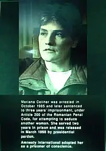 - ↑ Demick, Barbara (December 30, 1993). "It's Still A Crime To Be Gay In Romania: It Is One Of The Last Countries In Europe That Imprison Homosexuals". The Philadelphia Inquirer. Retrieved July 27, 2015.