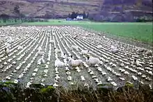 One result of these changes were the Highland Clearances, in which many tenants in the Highlands were evicted as lands were enclosed, principally so that they could be used for sheep farming. The clearances followed patterns of agricultural change throughout the UK, though were notorious as a result of the introduction of Lowland farmhands or practice into Highland agricultural land or practice, plus the lack of legal protection for year-by-year tenants under Scots law, and the abruptness of the change from the traditional clan system.[13] The result was a continuous exodus from the land—to the cities, or further afield to England, Canada, America or Australia.[14]