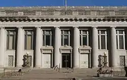 ![]() Central portion of front (west side) of Scottish Rite Temple, facing Centennial Mall. | |