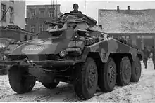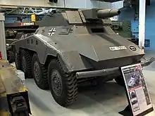 The Sd.Kfz. 234 (Sonderkraftfahrzeug 234, Special Purpose Vehicle 234), was a family of armoured cars designed and built in Germany during World War II. The vehicles were lightly armoured, armed with a 20, 50 or 75 mm main gun, and powered by a Tatra V12 diesel engine.[3] The Sd.Kfz. 234 broadly resembles the appearance of Sd.Kfz. 231 (8 rad).[2]
