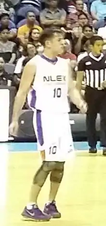 After a season with Barako Bull, he was again traded to Talk 'N Text in exchange for Jared Dillinger.[3] And just recently, before the end of the 2013–14 PBA Philippine Cup elimination round, he was traded again along with Eliud Poligrates and a 2016 first-round pick to Air21 Express in exchange for Niño Canaleta.[4]
