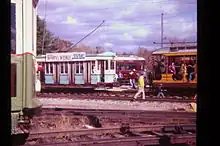 At about the same time, another group of rail fans purchased a trolley from the Manchester and Nashua Street Railway. The two groups merged, and the Nashua trolley was brought to the Log Cabin Road site. The group of founders formally incorporated in 1941 as the New England Electric Railway Historical Society.[4]