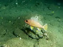 - ↑ Milton S. Love; Merit McCrea; and Li Kui (2018). "Aspects of the Life Histories of Pinkrose Rockfish (Sebastes simulator) and Swordspine Rockfish (Sebastes ensifer) with Notes on the Subgenus Sebastomus". Bulletin of the Southern California Academy of Sciences. 117 (1): 64–76. doi:10.3160/soca-117-01-64-76.1. S2CID 73693000.