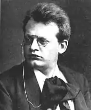 In 2008, the musicologists Richard Mercier and Donald Nold dedicated a book to Reger's songs. They noted that he chose texts not by literary significance but for their theme and mood.[2] The texts of Opus 35 have in common that they are love poems by contemporary writers.[3] Some poems deal with the eye of a beloved woman, others with twilight and night.[1] Reger composed individual songs, not song cycles, and selected for his performances songs from different collections. Most of his songs are through-composed, even when beginnings of stanzas at times begin with the same material. He favours syllabic rendition of the text, which helps its intelligibility. Usually his melodies require the accompaniment for expression.[4] Complex harmonies support text of "unsettling" and passionate content.[4] The first recorded performance was of #3 in Heidelberg on 5 November 1899 by Maria Hösl and the pianist Otto Seelig. Reger arranged #4 also for voice and orchestra, and wrote a version for voice and harmonium for 3–5.[1]