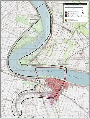 Map of Donaldsonville II Battlefield core and study areas by the American Battlefield Protection Program.