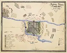 Siege of Szenttamás of 19 August 1849 (the image is upside down, left to right)
