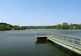 The Seeweiher is a reservoir north of the village of Waldernbach in the municipality of Mengerskirchen (county of Limburg-Weilburg) in the Westerwald in the German state of Hesse. It impounds the Vöhlerbach, a tributary of the Kallenbach which, in turn, flows into the River Lahn. It has a surface area of 13 hectares.