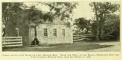 From The Diary of Captain Daniel Roe, 1806–08 (1904), caption reads: "School house near home of Capt. Daniel Roe. Near the tree, at the right, tradition says the Tory Captain Richard Miller fell from his horse in 1776."
