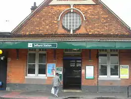 Selhurst railway station is in the London Borough of Croydon in south London, 9 miles 31 chains (15.1 km) along the line from London Victoria.[3][4] It is operated by Southern, which also provides all the train services. The station is in Travelcard Zone 4.
