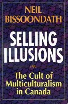 Selling Illusions: The Cult of Multiculturalism in Canada is a non-fiction book by Canadian author Neil Bissoondath, first published in 1994. The book puts forward an assessment of Canada's Multiculturalism Act (1988) and how the bi-cultural nature of the country is to be willfully refashioned into a multicultural "mosaic".[1] Bissoondath argues that the policy of multiculturalism, with its emphasis on the former or ancestral homeland and its insistence that There is more important than Here, discourages the full loyalty of Canada's citizens.[2]