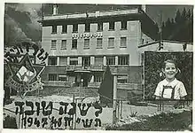 The Selvino children were a group of approximately 810 Jewish children orphaned by the Holocaust,[1] rescued after World War II from ghettos and concentration camps and housed in a former Fascist children's home called Sciesopoli in the Alpine town of Selvino, Italy. The facility had been constructed in the 1930s (the colony was inaugurated on June 11, 1933, built by the architect of sports facilities Paolo Vietti Violi) as a "sports palace" or gymnasium and training centre for athletes).[2] There, the children were allowed to recover physically, mentally, and spiritually from their ordeal, while being instructed both in the general education they had missed during their imprisonment, as well as in their heritage of Judaism and Judaic culture, in preparation for their later relocation to the still British-ruled Mandatory Palestine as part of the Bricha immigration programme. The house was run by members of a Palestinian Jewish unit of the British Army stationed in Northern Italy under Moshe Zeiri, along with the generous help of many Italian citizens. From early 1947 to May 1948, when the State of Israel was declared, Amalia (Mania) Schoeps was director of Sciesopoli.[1]